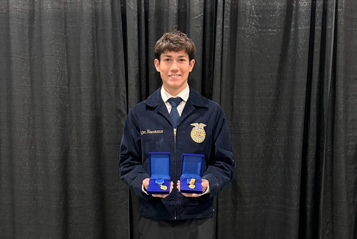 ANGELS CAMP, CA – Senior Peyton Heermance earned national honors Friday, October 31st in Indianapolis when he was declared the 2025 National FFA Agricultural Proficiency in Veterinary Science Champion at the 98th National FFA Convention & Expo. Heermance was also named the California FFA State Veterinary Science Proficiency Award Champion in April at the 97th Annual California State FFA Leadership Conference. "Peyton’s achievement as a National FFA Proficiency Champion in Veterinary Science is monumental for the Bret Harte Bullfrogs,” shared Scott Nanik, superintendent. “He is the first Proficiency Champion from our school to reach this national pinnacle. His dedication and passion have truly set a new standard for excellence."
